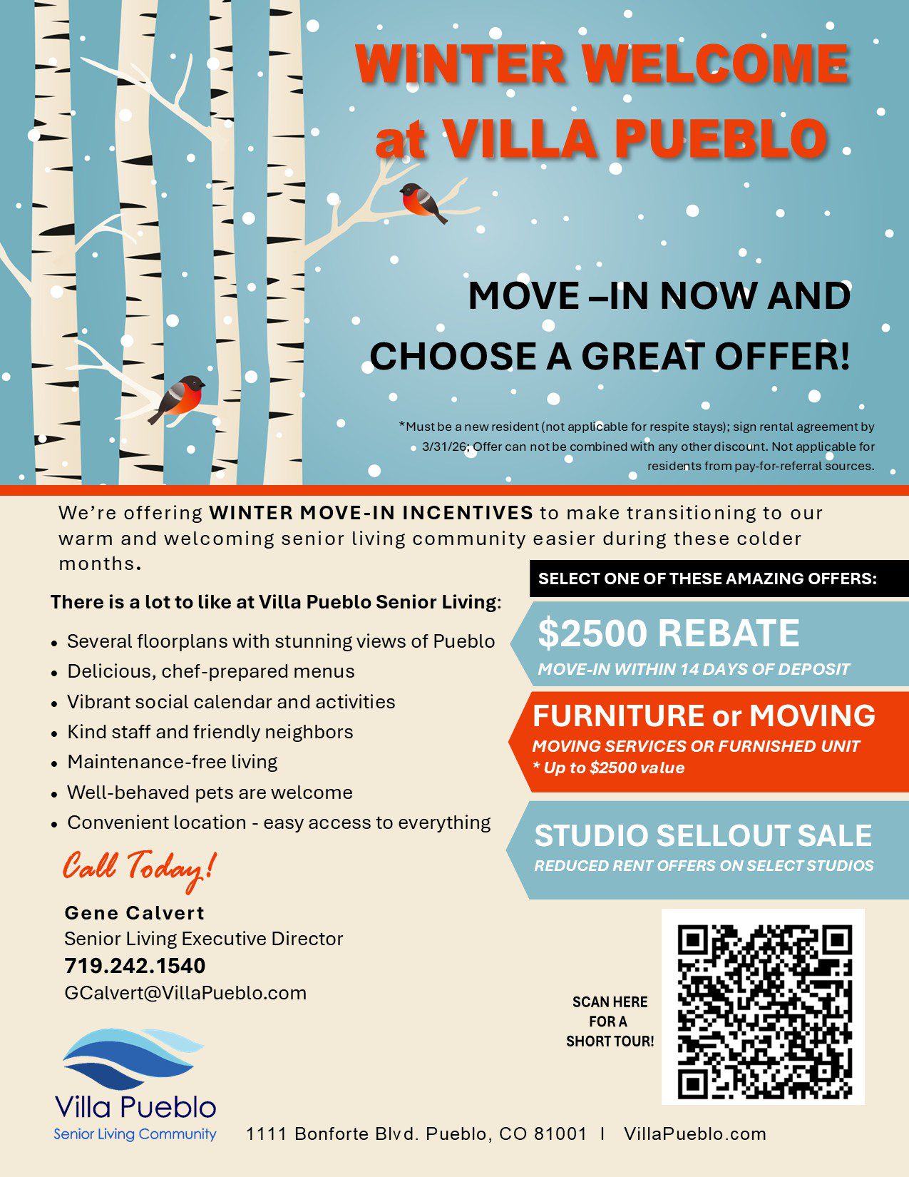 At Villa Pueblo we marry compassionate care and a genuine commitment to kindness from the very best caregivers with a top-notch facility in beautiful Pueblo, Colorado in order to deliver special and personalized care, dining and programs which encourages those welcoming brighter days ahead to have a thirst to do more of what they love.