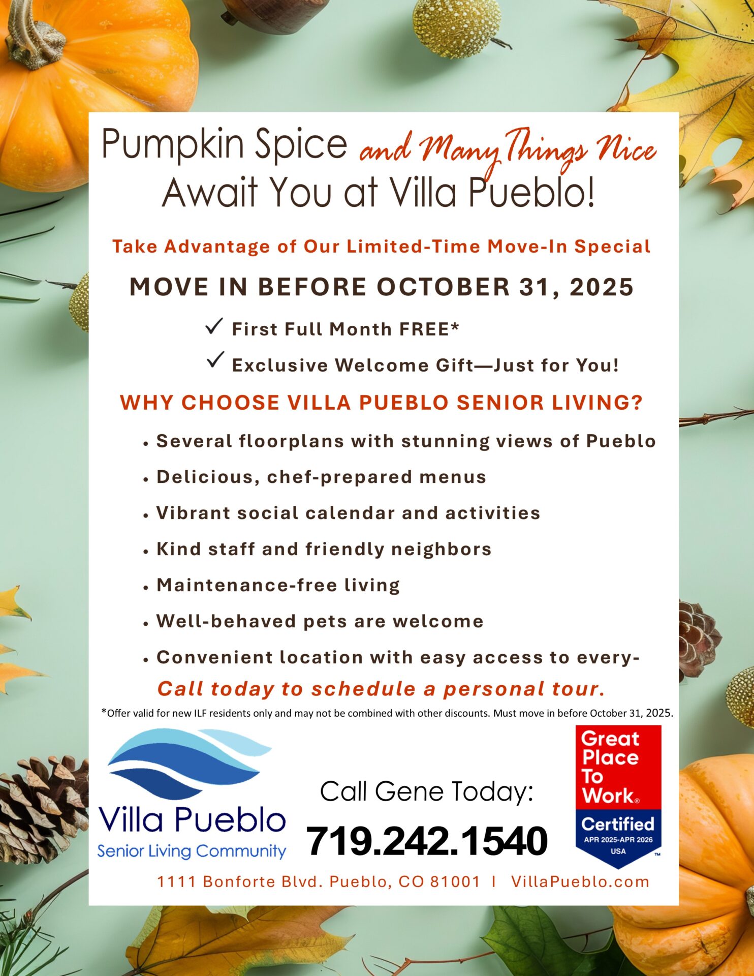 At Villa Pueblo we marry compassionate care and a genuine commitment to kindness from the very best caregivers with a top-notch facility in beautiful Pueblo, Colorado in order to deliver special and personalized care, dining and programs which encourages those welcoming brighter days ahead to have a thirst to do more of what they love.